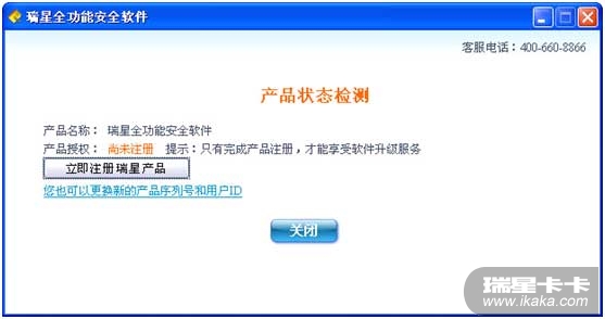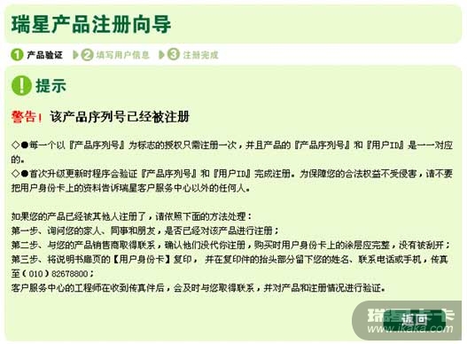 注意:在对瑞星产品进行激活或注册前,请确定您的电脑已经联接到互联网。
