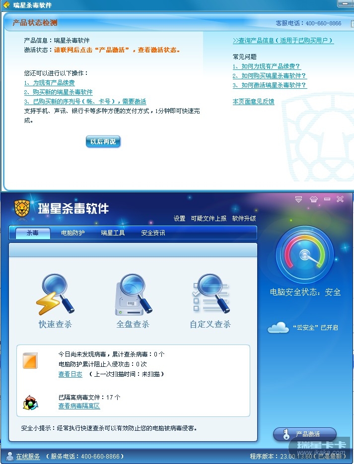 请放心使用,瑞星杀毒软件免费使用半年进行中。