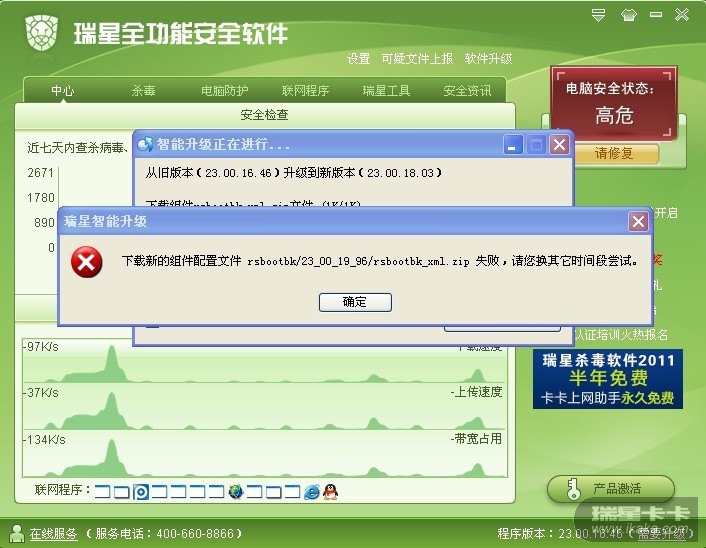 [求助] 版主来看,我的瑞星已经15天不能升级叻
