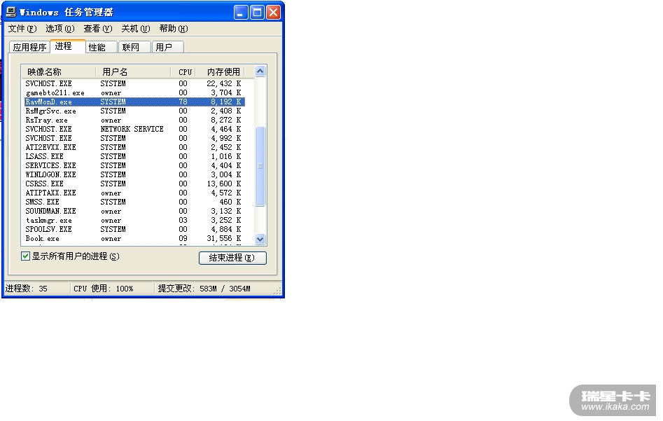 回复: 我每次使用软件,瑞星的两个进程CPU使用率就占到100%
