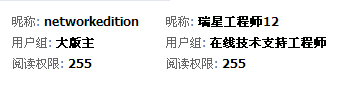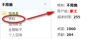 将鼠标悬停在发帖人昵称上,点击“资料”即可确定此昵称所在的用户组: