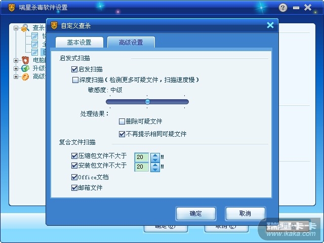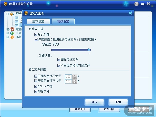 你在复合文件扫描里布勾选压缩包文件的话,就表示不对压缩包进行扫描~~
