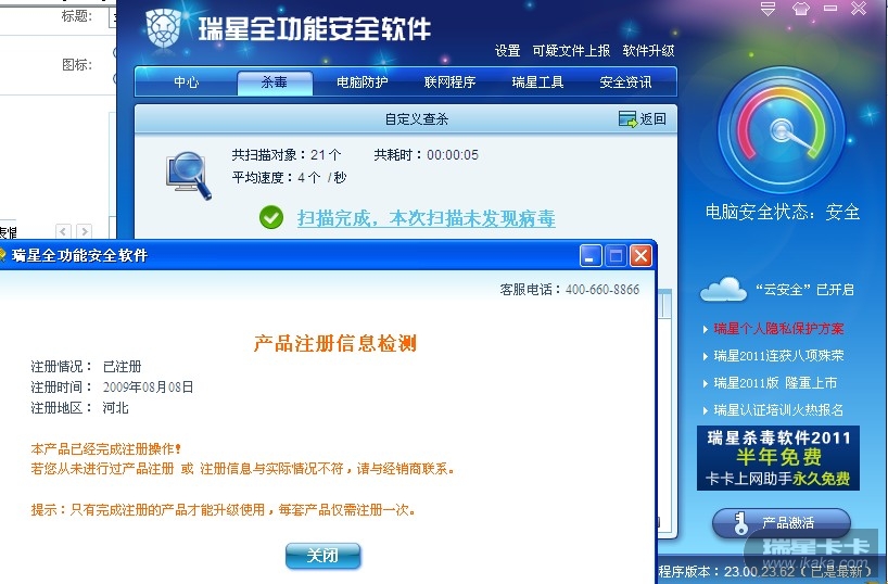 瑞星,你倒是给我杀出一个木马来啦。。。。一年多了,一年多了