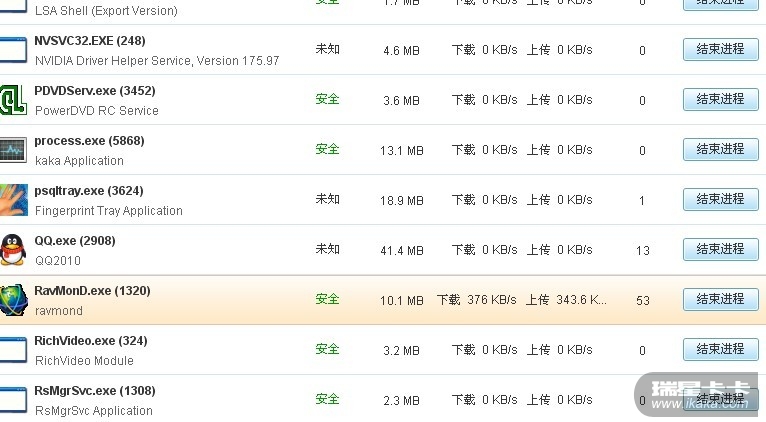 RavMonD.exe为瑞星监控进程,显示为系统所有联网程序的流量总和。