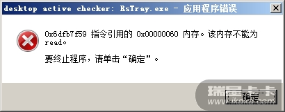 弹出这个框后,瑞星的监控程序就自动退出了 每一次更换皮肤都会这样,请问这个是BUG吗 ?