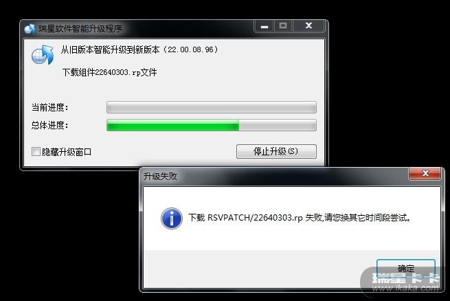 昨天重做了系统(win7 32位系统),安装瑞星09版,升级时提示“下载 RSVPATCH/22640303.rp 失败,请您换其他时间段尝试。”。已经重试了最少30次,每次都是这个提示,无语了。哪位大侠出手拉一把?谢谢了!!