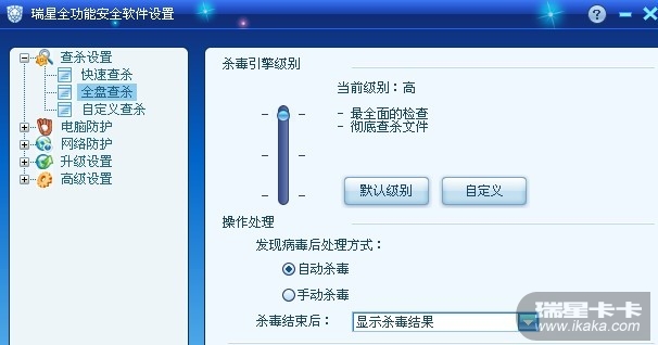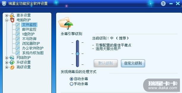 瑞星有个“智能模式”,你就选这就可以啦,默认设置即可。