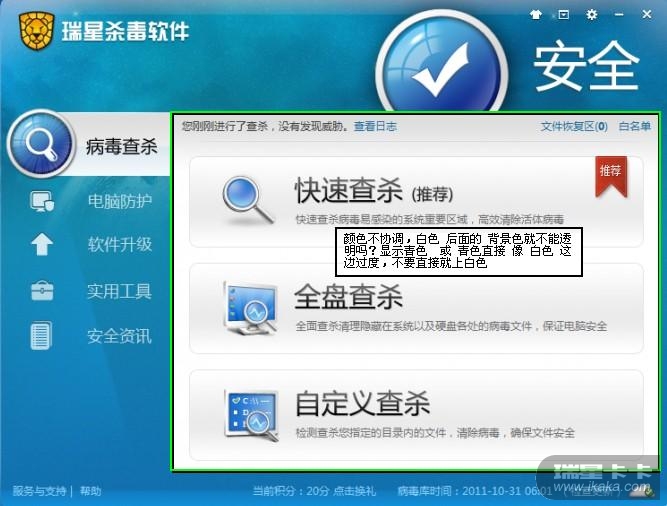 不像瑞星 除了蓝色 ,马上就是 白色 ,一点也不美观
