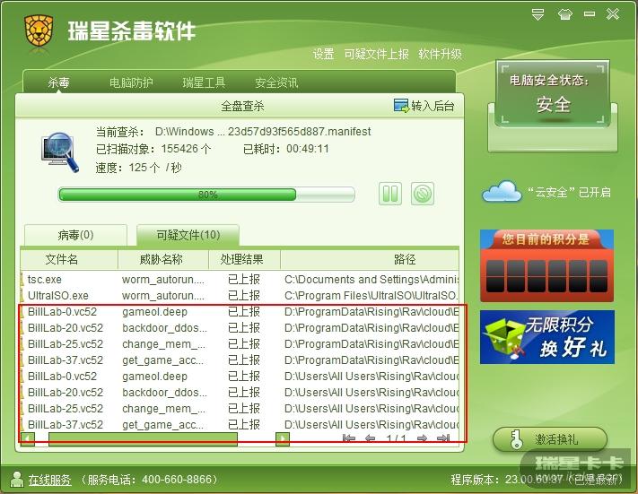 瑞星版本:rav2011 23.00.60.87
