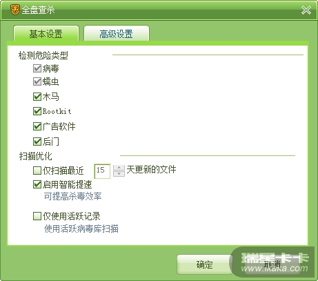 全盘扫描的设定:
