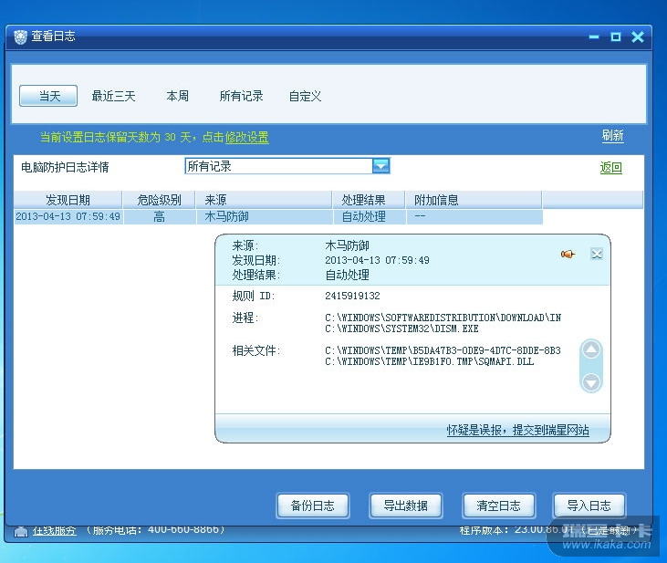 2013-04-13 07:59:49 高 木马防御 自动处理 --