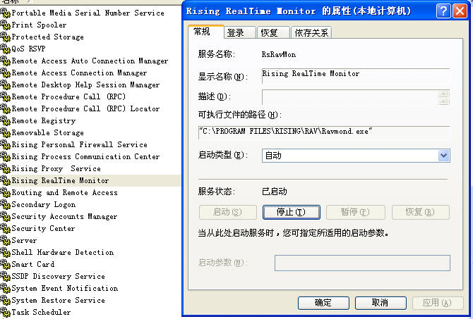 2.找到Rising RealTime Monitor这个服务,手动开启这个服务。