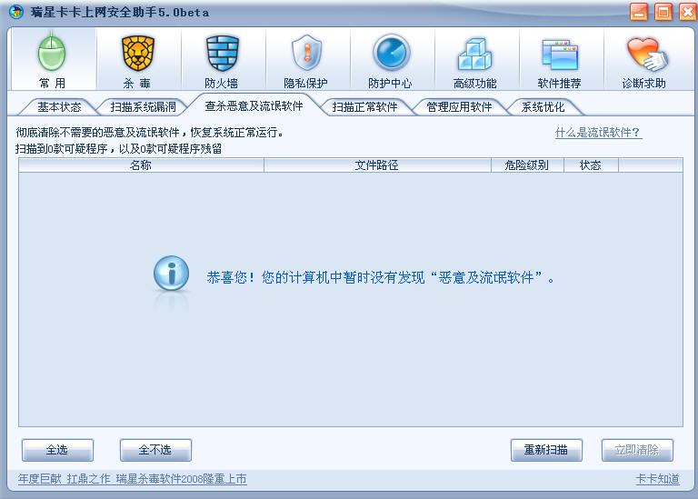 瑞星全功能安全软件2009公测