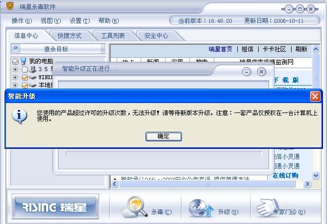 杀毒软件无法更新,提示超过升级次数,等待新的版本升级
