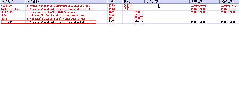 最近有朋友求助说杀毒软件在升级过程中,有时系统黑屏或蓝屏,升级不了。经过分析这种情况有可能是病毒原因造成的。有一个病毒文件msosfpids32.sys会注册为系统服务,目的是将病毒文件msosdrop00.dll隐藏。这两个文件就可能导致系统蓝屏。