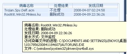 ns4bsll.sys删除失败 正版瑞星版本20.38.10安全模式删除失败,以前版本反而可以删除,但杀了又回来!