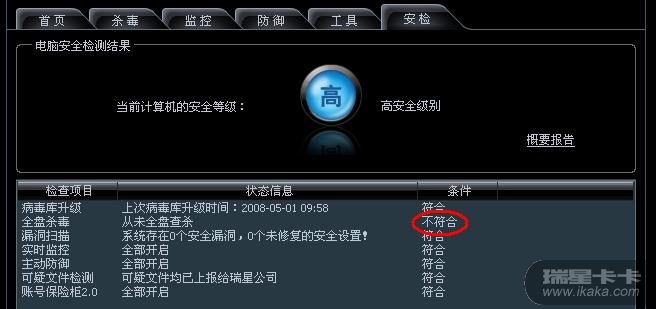 瑞星卡卡安全论坛个人产品讨论区瑞星杀毒软件瑞星杀毒软件2011 刚刚全盘查杀结束,依旧提示“全盘查杀——不符合”??