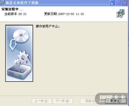 一开机时绿色 几秒后出现黄伞 修复瑞星的时候提示 操作被用户终止 怎么办