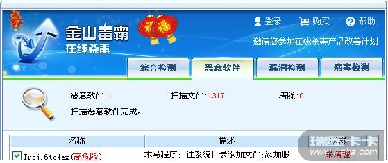 Troj.6to4ex木马,金山在线检查出来,正版瑞星查不出来