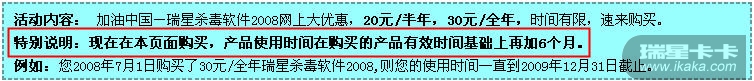 优惠活动以前购买的瑞星,不享受免费半年的服务