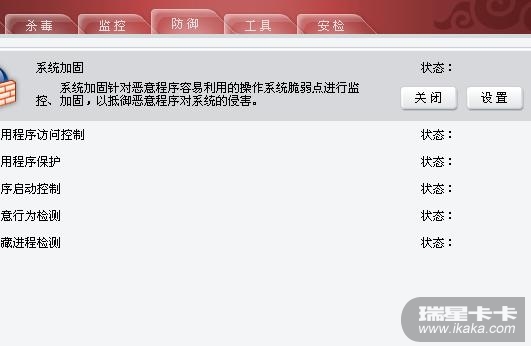很多时候是病毒关闭了监控,这时候需要升级瑞星全盘杀毒,或者是配合瑞星提供的专杀来杀毒,最后的方法就是扫描听诊器信息上报瑞星分析,或者是在论坛里扫描sreng日志来分析处理