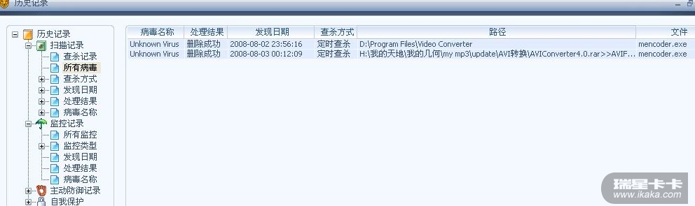 Video Converter等视频转换工具中带有mencoder.exe,8月2号瑞星升级完毕后竟悄悄的把它杀了!!!第二天又把压缩包中的一个视频转换的mencoder.exe杀了!!!毫无提示!!今天发现问题!!很奇怪!! 在检测瑞星后(网上流行的一段代码),在历史记录中发现误杀了mencoder.exe!刚刚恢复后视频转换也正常了!!