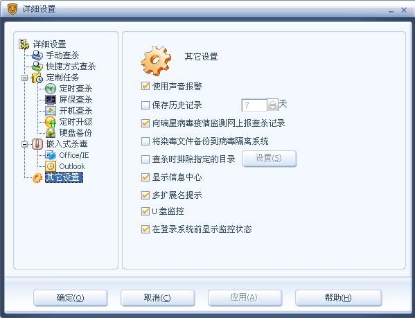 找到解决方法了,在瑞星详细设置里设成如下图所示就行了!