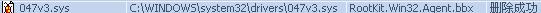 每次杀毒的时候在c:\windows\system32\drivers\047v3.sys这个文件有RootKit.Win32.Agent.bbx这个病毒,并且每次都显示删除成功,可是下次再杀的时候又有,不知道是咋回事儿,请高手指点