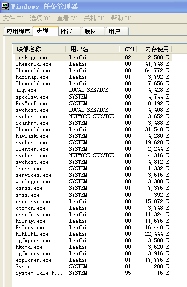 下面是我的2008组合版的瑞星的资源占用。