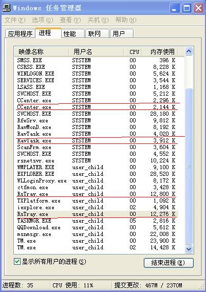 回复:瑞星杀毒防火墙套装出现3个相同进程