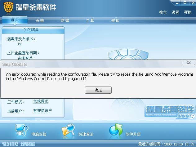 开始\程序\瑞星杀毒软件\添加删除组件\修复瑞星杀毒软件程序