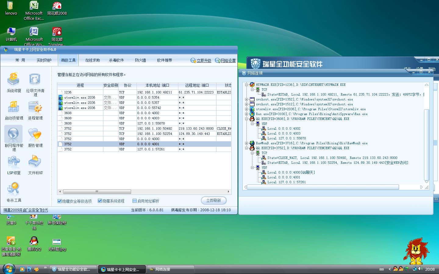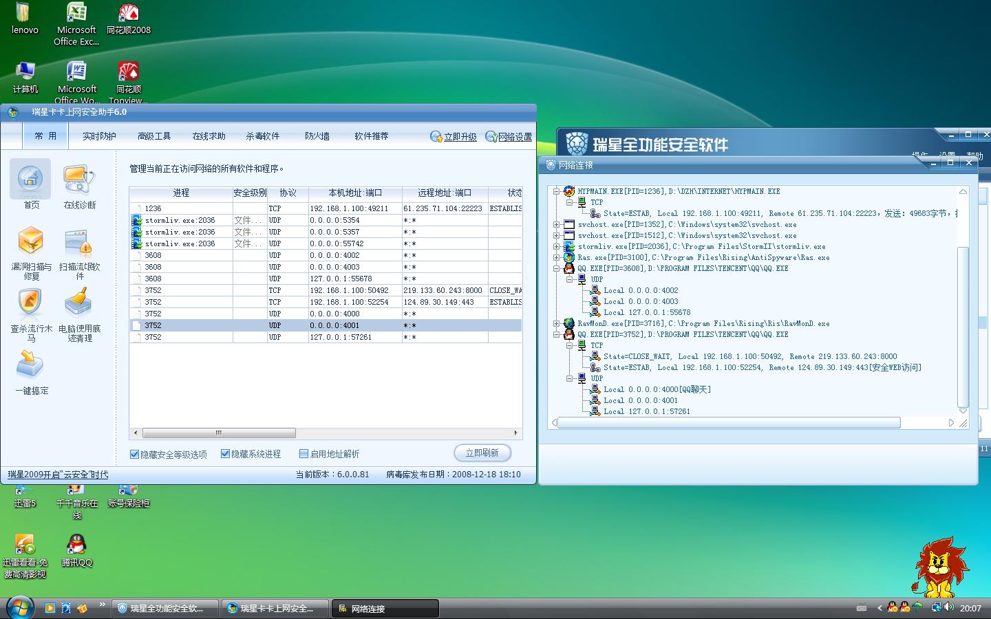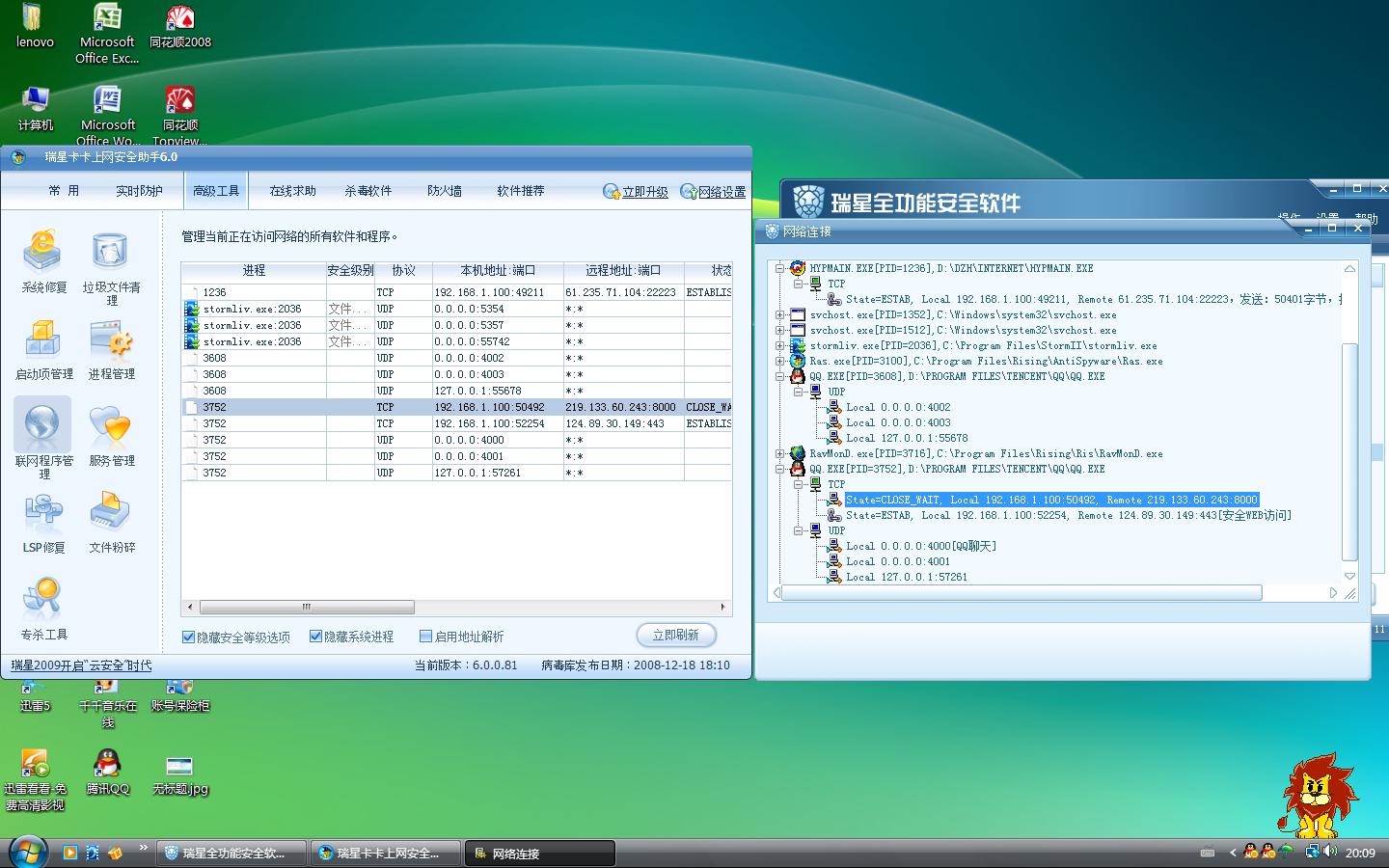 原来都是QQ及大智慧惹的祸!!!是它们在联网呢!
