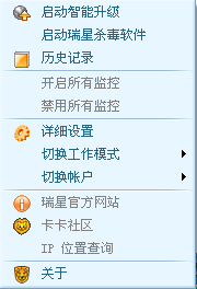 我的瑞星自动升级为2009,为什么右键瑞星绿伞,开启所有监控和关闭所有监控都是灰色不可选状态了?