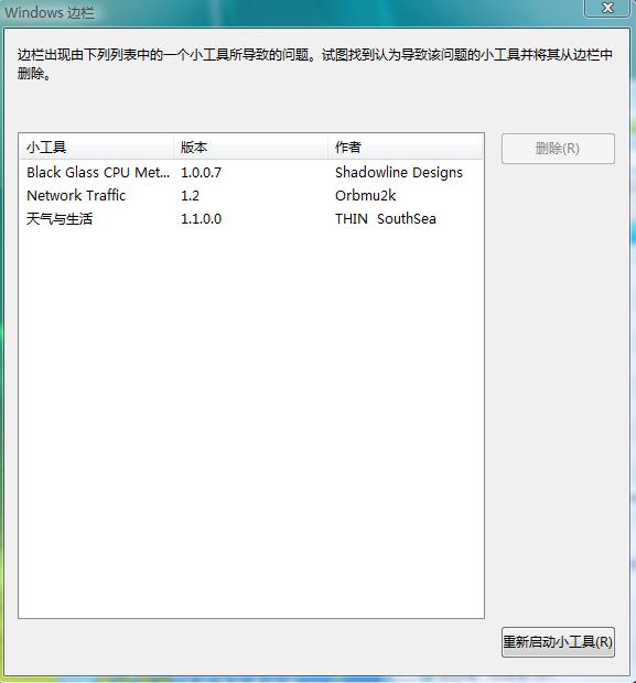 VISTA什么版本的系统?侧边栏异常的截图提供下