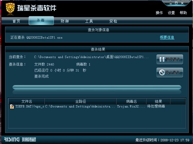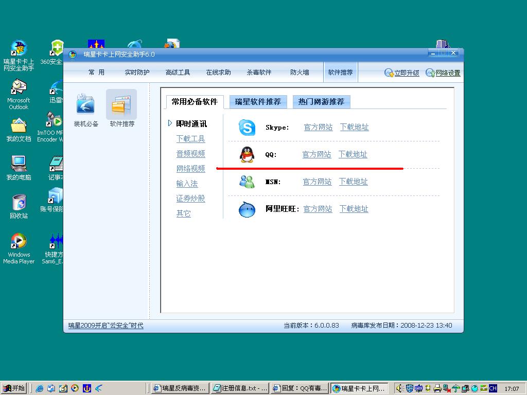我在官方网站下载的~比你的360还正宗呢 昨天上报的时候是最新版的瑞星~QQ08也是最新版的