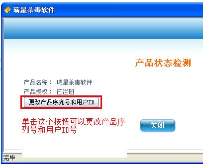 安装完毕后只能重置ID,如有更改序列号的需要,请卸载瑞星后重新启动,然后再安装时使用新的序列号。