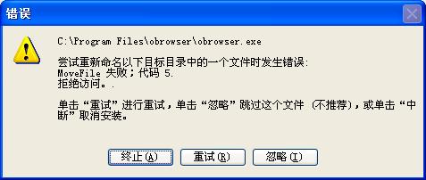 ,出现错误后选择"重试"就可以安装完成,运行也没什么问题