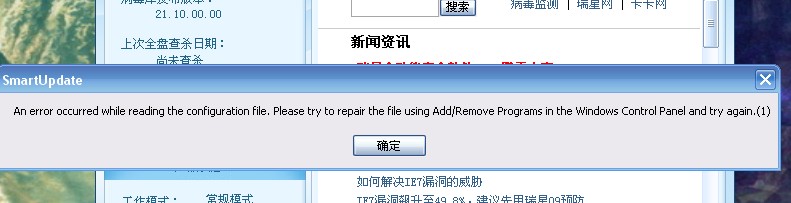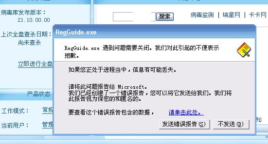 一双击版本21.19的瑞星就出现错误报告,附图如下: