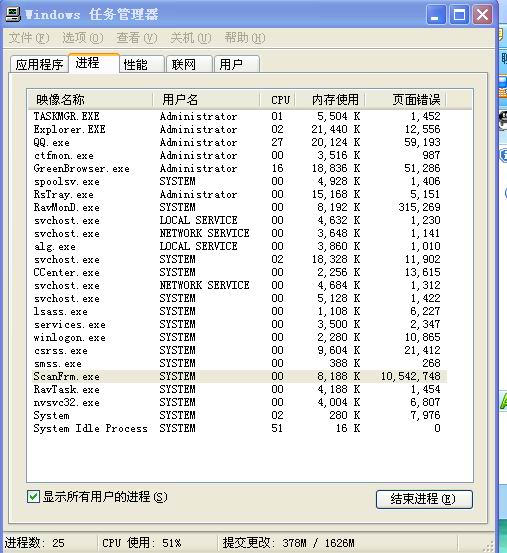 [求助] ScanFrm.exe这个进程页面错误内存占用多,如何解决