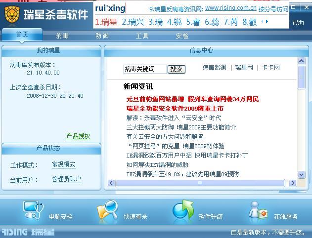 瑞星杀毒软件2009公测