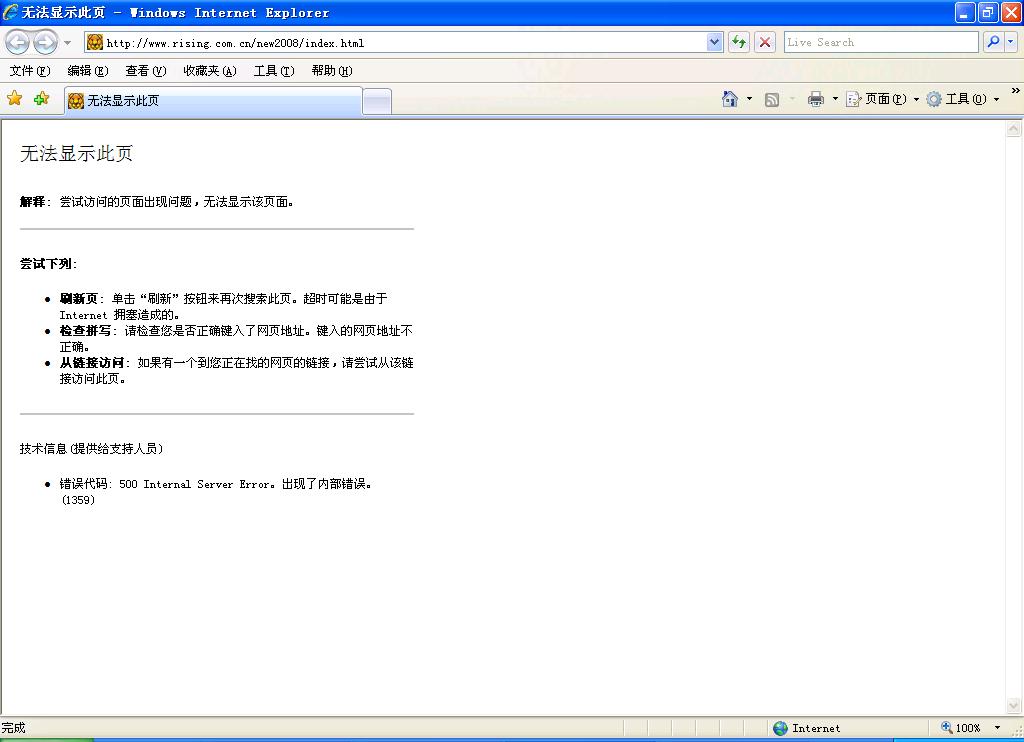 2008年1月2日PM.22:34,所有的瑞星用户都应记住这个时间,瑞星官网无法连接........(不知诸位又如何?)本人绝对相信本人的网络没问题,也绝不怀疑机子中毒,难道