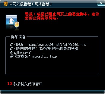 瑞星还提示漏洞对象名