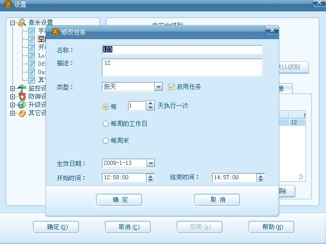 自从升级到O9版后,我就重新设置了下查杀设置,在空闲时段那里重新设置了下时间,结果升级完后到现在一直没有自动杀毒过...反复设置了几次都不行,甚至改成跟原先默认的一样.希望哪位朋友知道告诉下