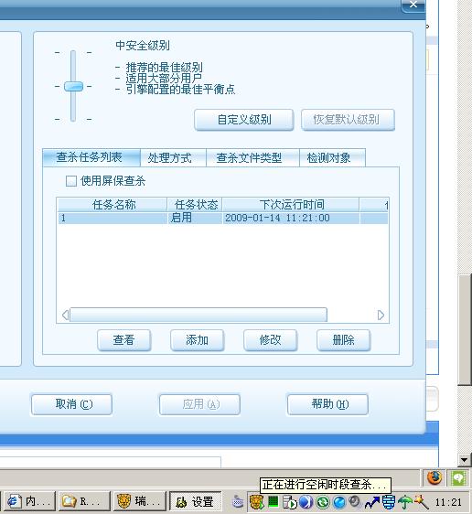 原来08版的瑞星杀毒软件在详细设定里面选择定时查杀,杀完毒以后就会自动关机了,可是自从升到09版以后,我找不到定时查杀了,只有一个闲时查杀,可是我设定完以后却不能用,请问这是什么原因,如何设定???
