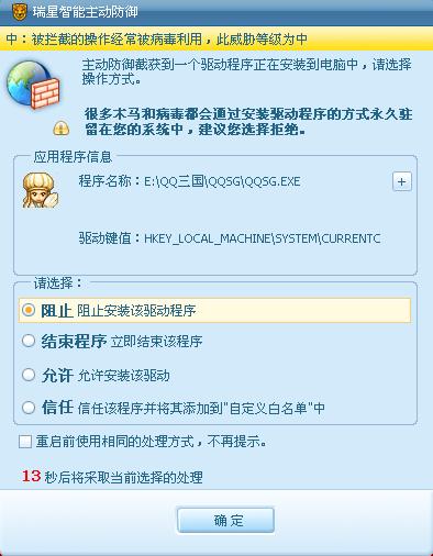 玩一些游戏的时候,要按驱动程序,瑞星就拦截了,游戏就不能进了。那个驱动程序可以装不。[img]http://b12.photo.store.qq.com/http_imgload.cgi?/rurl4_b=7f71f2ae4ccec534bc16667ef4ac4da225604f8891806f541ea9eb666035354a0f186a91e7a71c8c0288041cd3dc7bae77f18b76e5fb1c497357c09b89d2e96122ea86a96