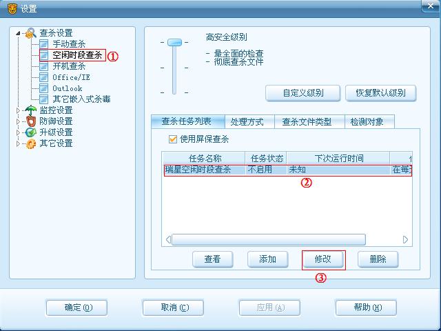 楼主可以在空闲时查杀中设置