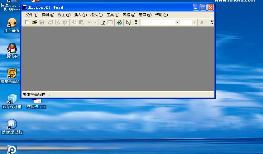 RT 然后word文档就黑屏了 无语..........注意左下角 瑞星版本是09最新的 word版本是2000的