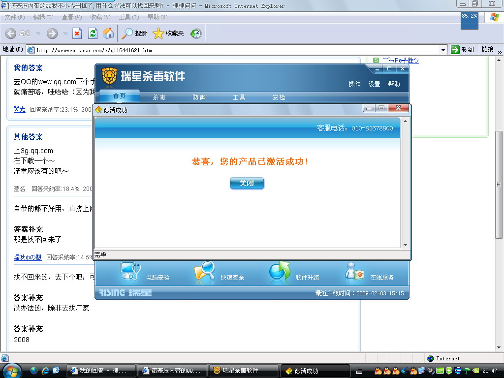 回复:瑞星已经激活过了,但是再点升级还是出现提示窗口速解决