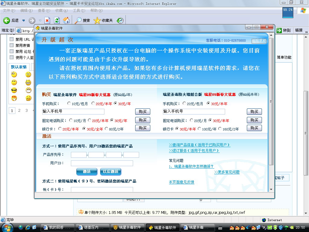 [求助] 瑞星已经激活过了,但是再点升级还是出现提示窗口速解决