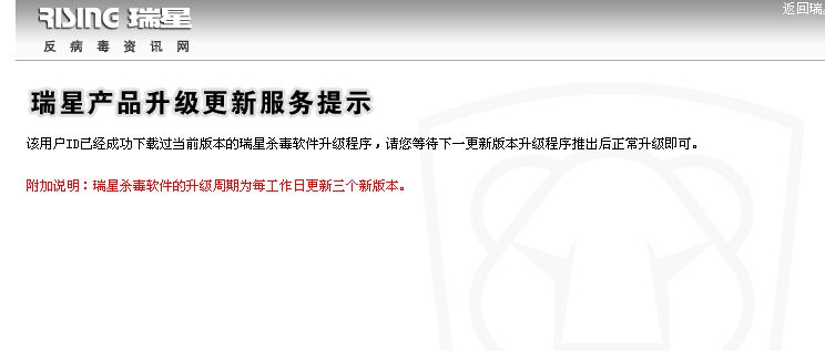 你有id和序列号吗?升级时一个序列号只能升一次,你瑞星只装了1台电脑吗?